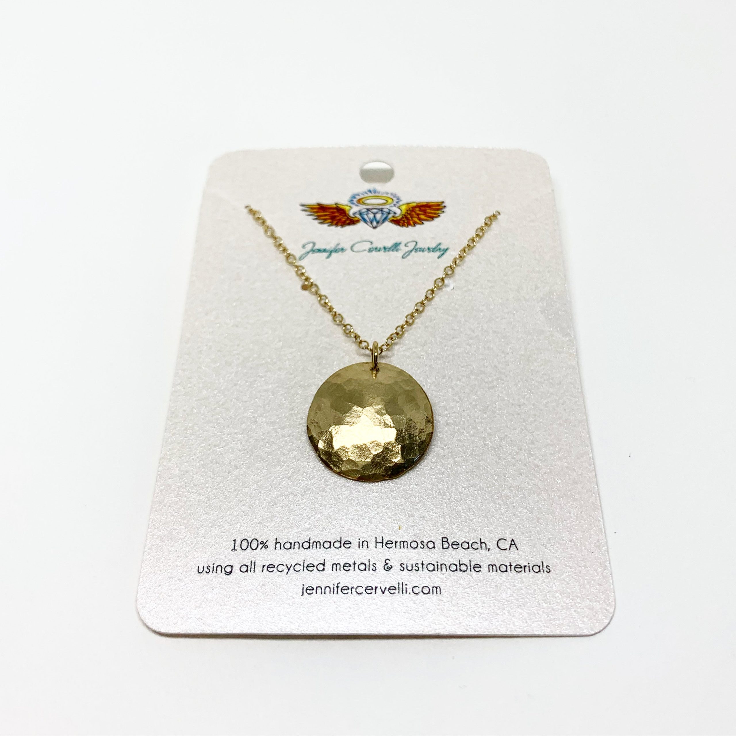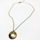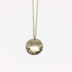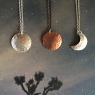 The full moon necklace is a part of The Ranch Collection: Heirloom quality, whimsical jewelry inspired by nature’s indefinable beauty and the timeless, organic raw aesthetics of the world around us. Moon is approx 3/4 inch in size and is hammered to create texture.