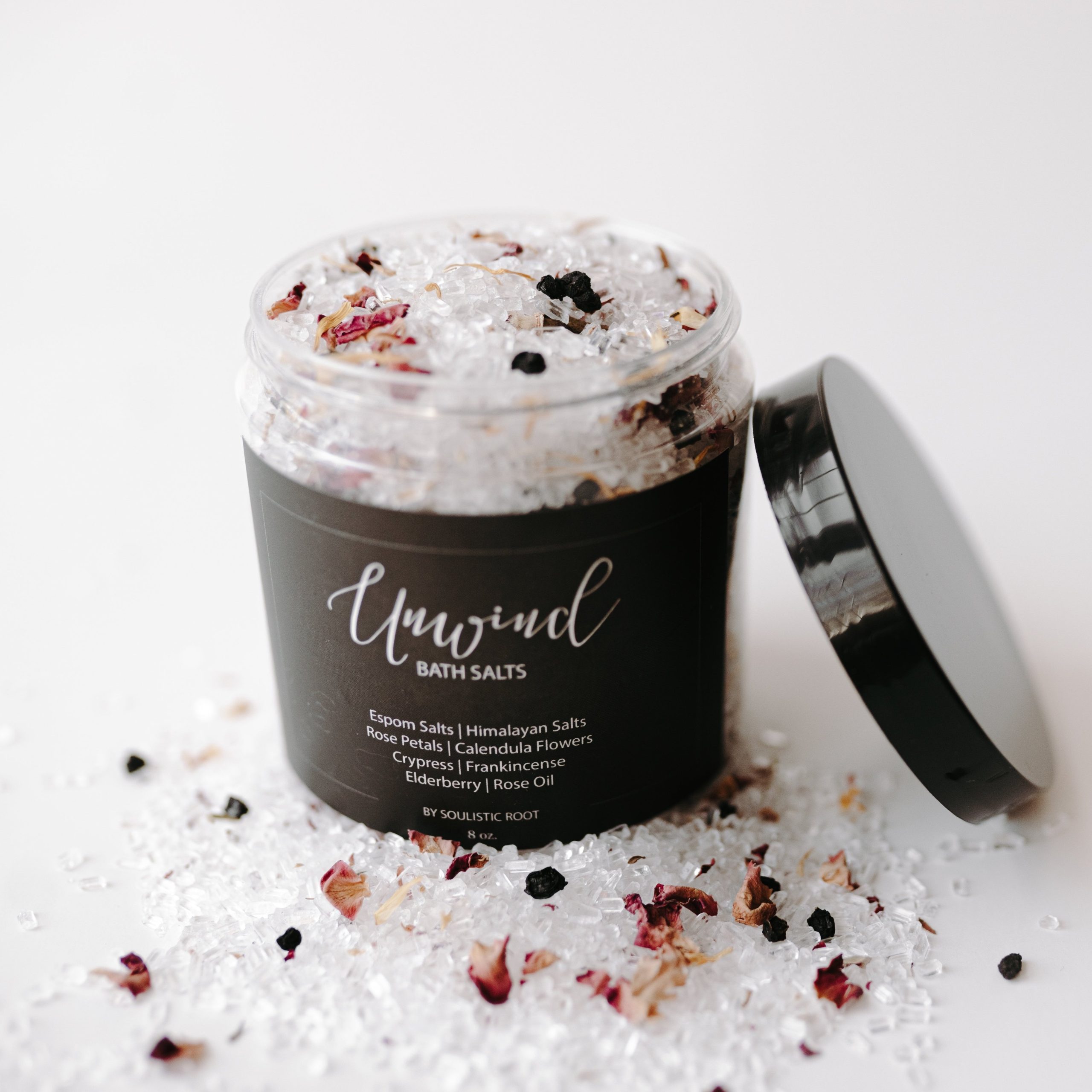 A soothing blend of Epsom salt, Himalayan salt, dried elderberries, calendula flowers, rose petals, and a blend of frankincense, rose and cypress essential oil. Wind down for restful sleep with a gentle and calming fragrance to relax.
